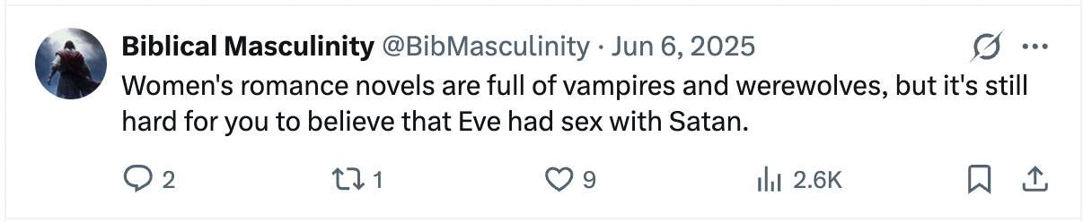 Pride, hiding behind performative masculinity, on the other hand, offers an easy cop-out: “you’re so based. Thank God you’re not like those soft liberal men. Modern women are degenerate so why even ask any of them out.”