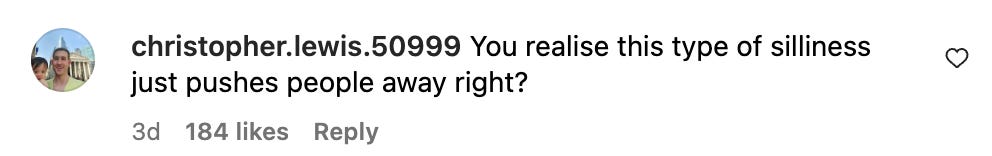 The meme I posted is not why people don’t come to our side. The humorless, boring, soft men that get offended by memes and ugly words are. And yes, you shouldn’t curse. But is it really something so grave that you feel the need to voice your virtue in the comment section of a MEME?
