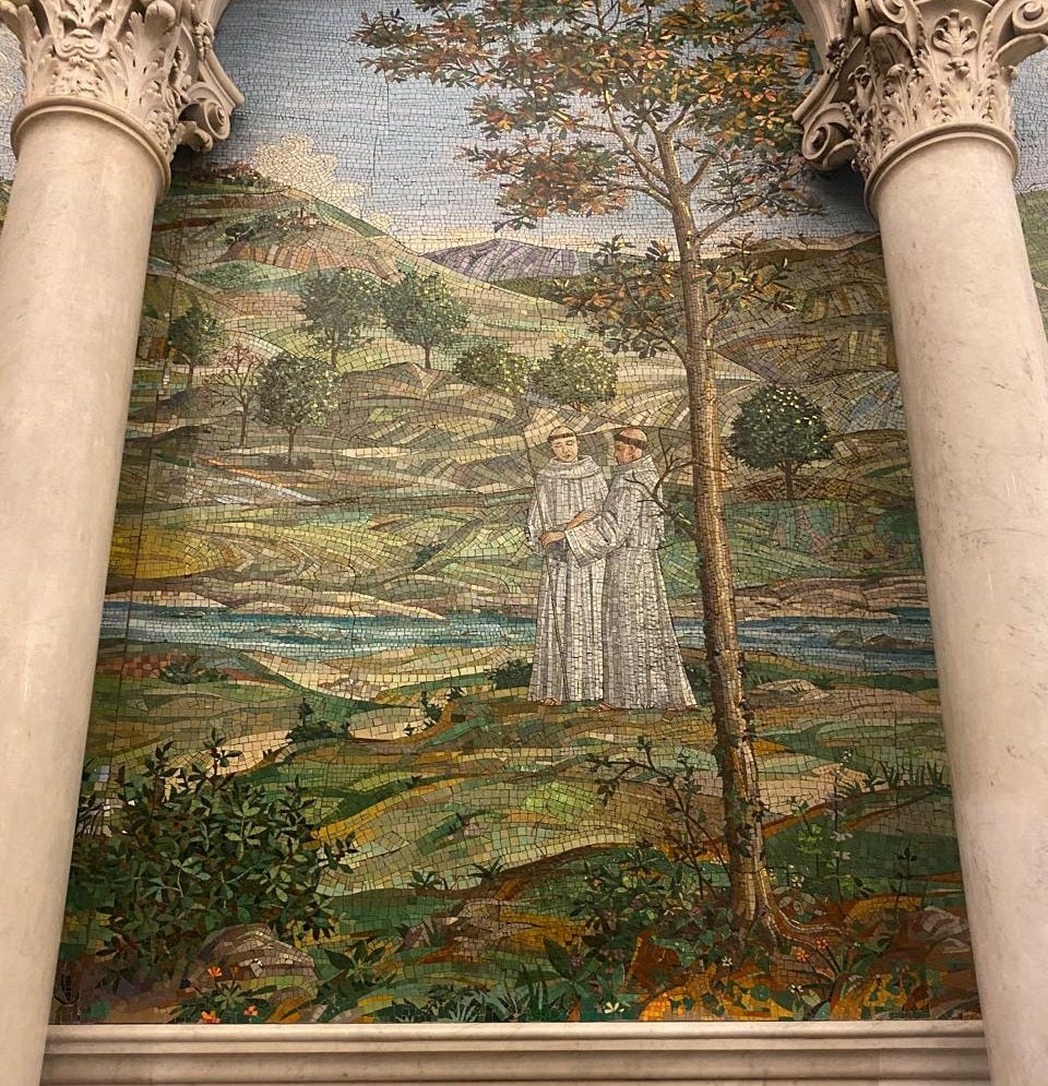 About halfway through the program, we visited Saint Matthew’s Cathedral, a beautiful old church. There was a little chapel in the Cathedral dedicated to Saint Francis. In this chapel, there were beautiful paintings all over the wall, and underneath them, brief segments of Saint Francis’ “Canticle of the Creatures”: