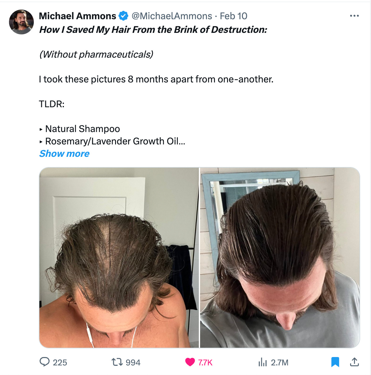 For some context, although I still have a pretty strong hairline, I’ve noticed some hair loss over the last couple of years, and I had been actively looking for holistic protocols and natural solutions to stop my hairline from receding and even grow some of it back if possible. One of the first things I learnt was how toxic most commercial shampoos are —which I was still using at the time. Sadly, I hadn’t found any solid natural alternatives, until I came across the aforementioned thread. Most of the advice that Michael gives in it I had already heard, so what really caught my eye was his recommendation for a natural shampoo: FountainHead.
