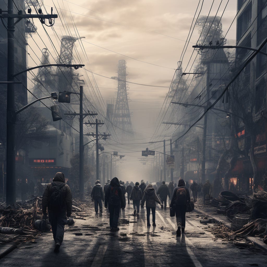 All of this you can observe: when you walk outside and see no sky, when you live deafened by the whirring sounds of machinery, when you see millions of empty eyes in the people you cross paths with, know that it is but a warning that collapse is coming.