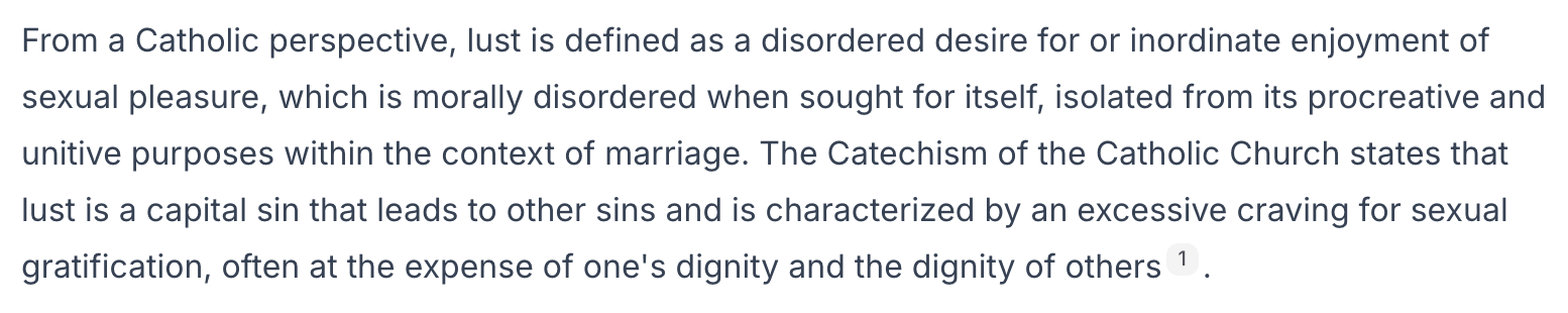 That means that not just the disordered actions constitute lust, but the very desire is sinful too. Talk about setting high standards of behavior, Not only are we called to abstain from disordered sexual behavior, but also to remove the disordered desire from our heart.